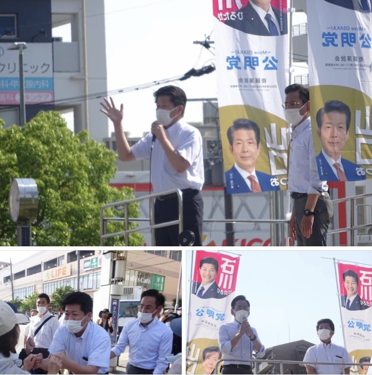 香里園駅前、石川ひろたか議員と公明党街頭演説会