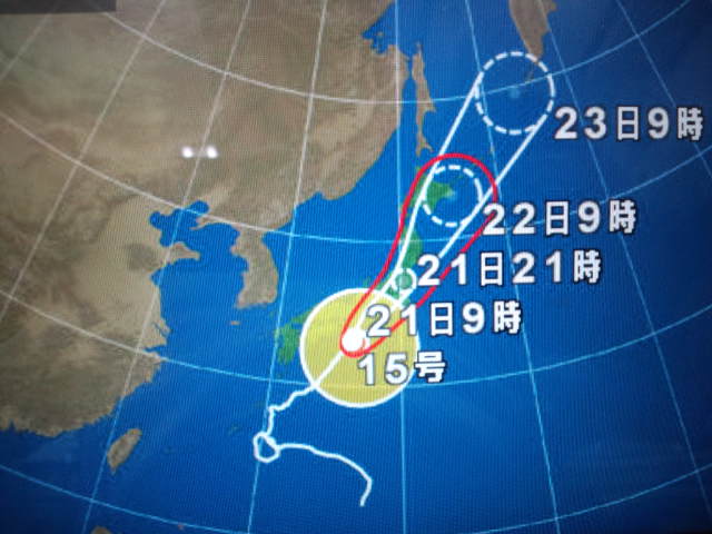 非常に強い台風15号が東海に上陸し、本州を縦断しそうです。