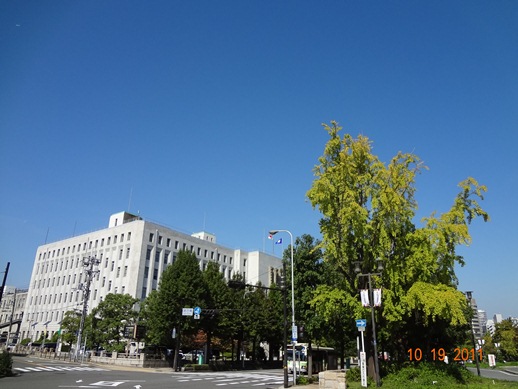 府庁に着くと、大阪城公園の周りの樹木も少しずつ、色づいてきました。