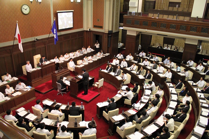 府議会9月定例会は、断続的な議事運営となり、21日午後1時に始まった議会は、日が変わった22日の朝方3時半前に閉会となりました。