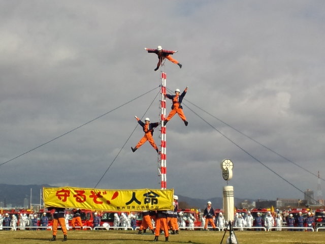 淀川河川公園にて、恒例の「枚方寝屋川消防組合 寝屋川市消防団 枚方市消防団 消防出初式」が実施されました。