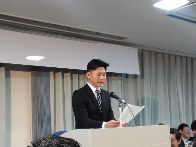 その中で、地元寝屋川市の後輩議員の村上順一議員が、男性議員代表で、元気一杯の活動報告をしました。