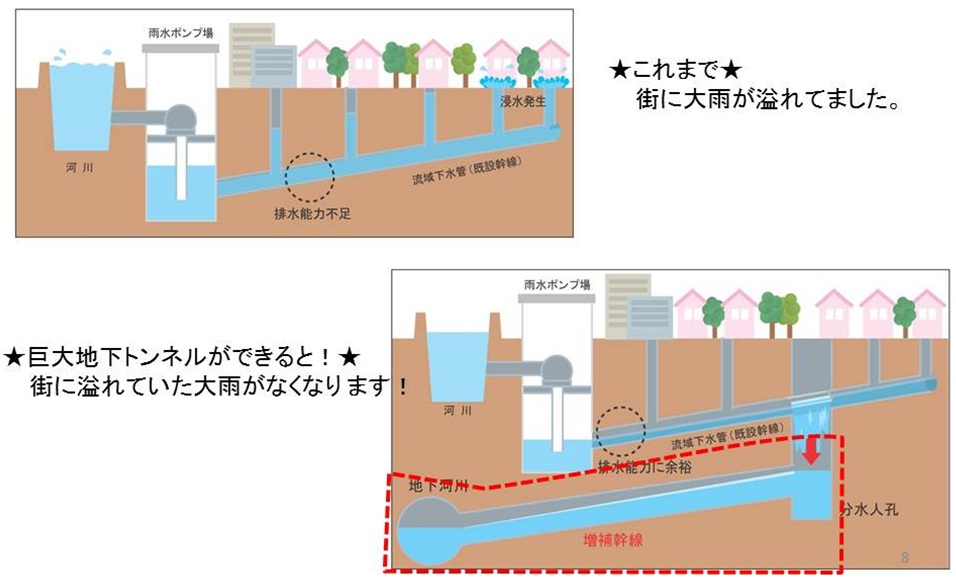 完成するまでには長い年月を必要としますが、今回のような浸水被害から命と暮らしを守るために地下河川の早期実現を目指してまいります。