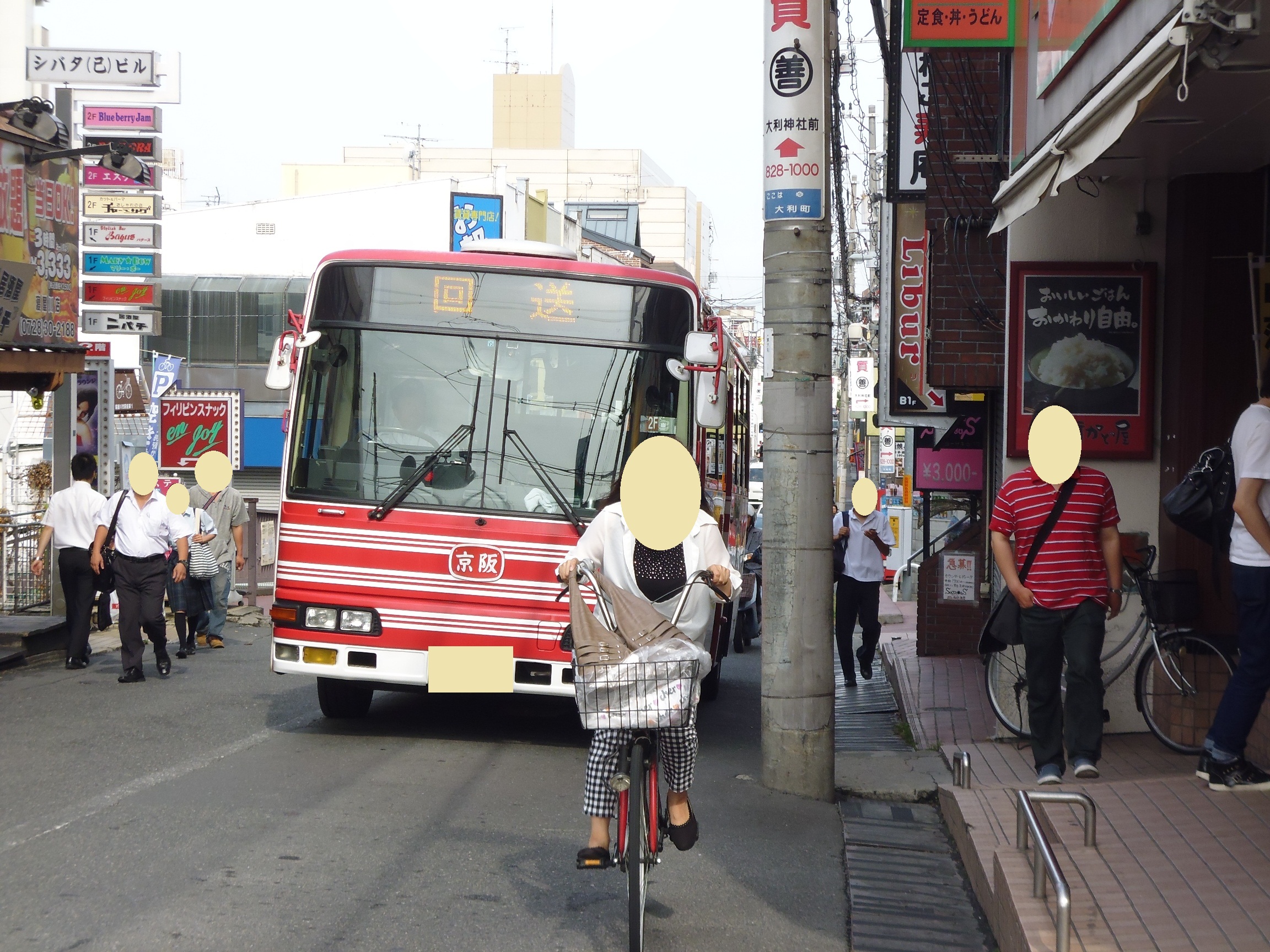 例えば、寝屋川市駅から西に向かう府道 枚方交野寝屋川線。