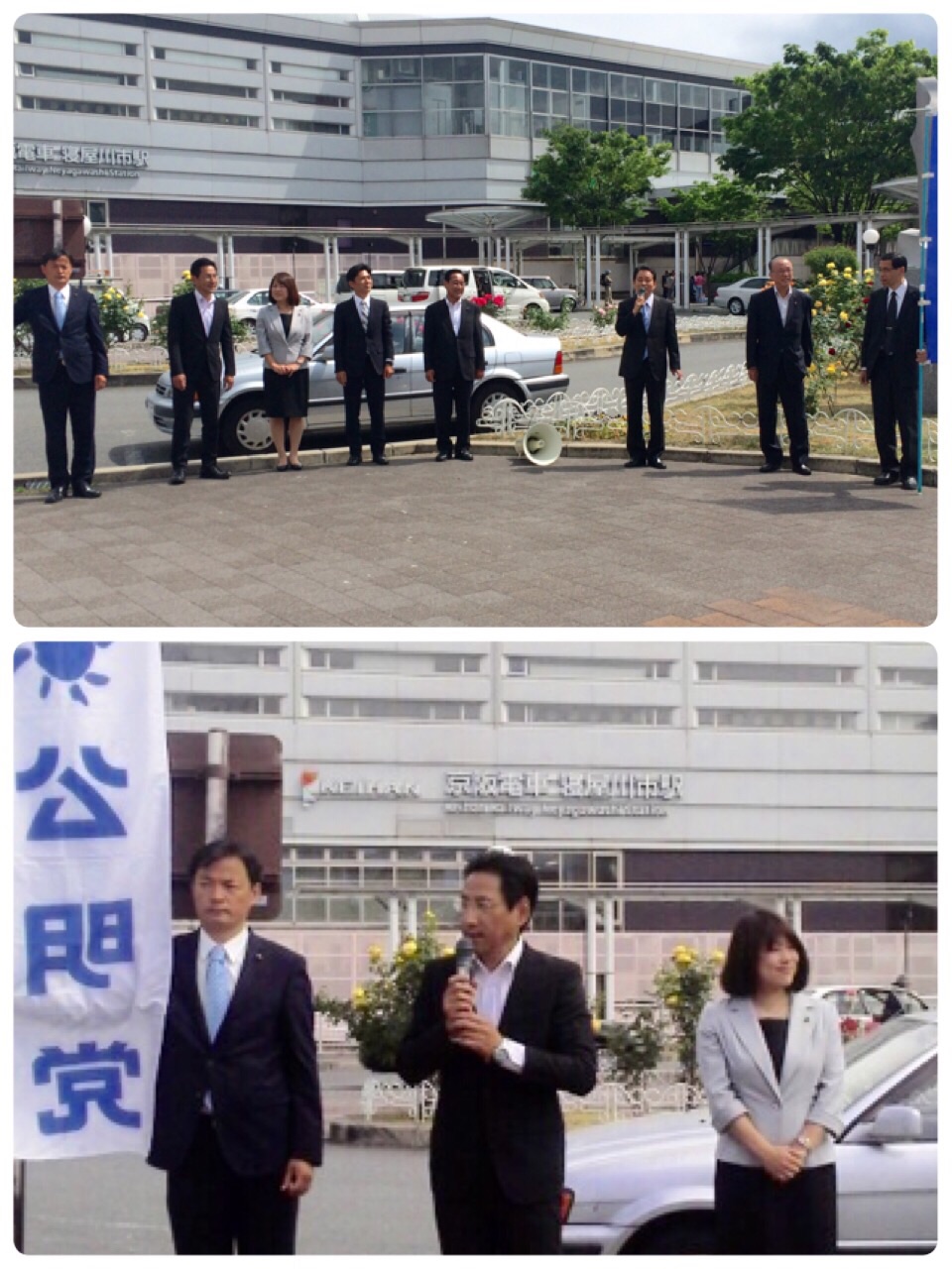 寝屋川市駅で街頭演説。