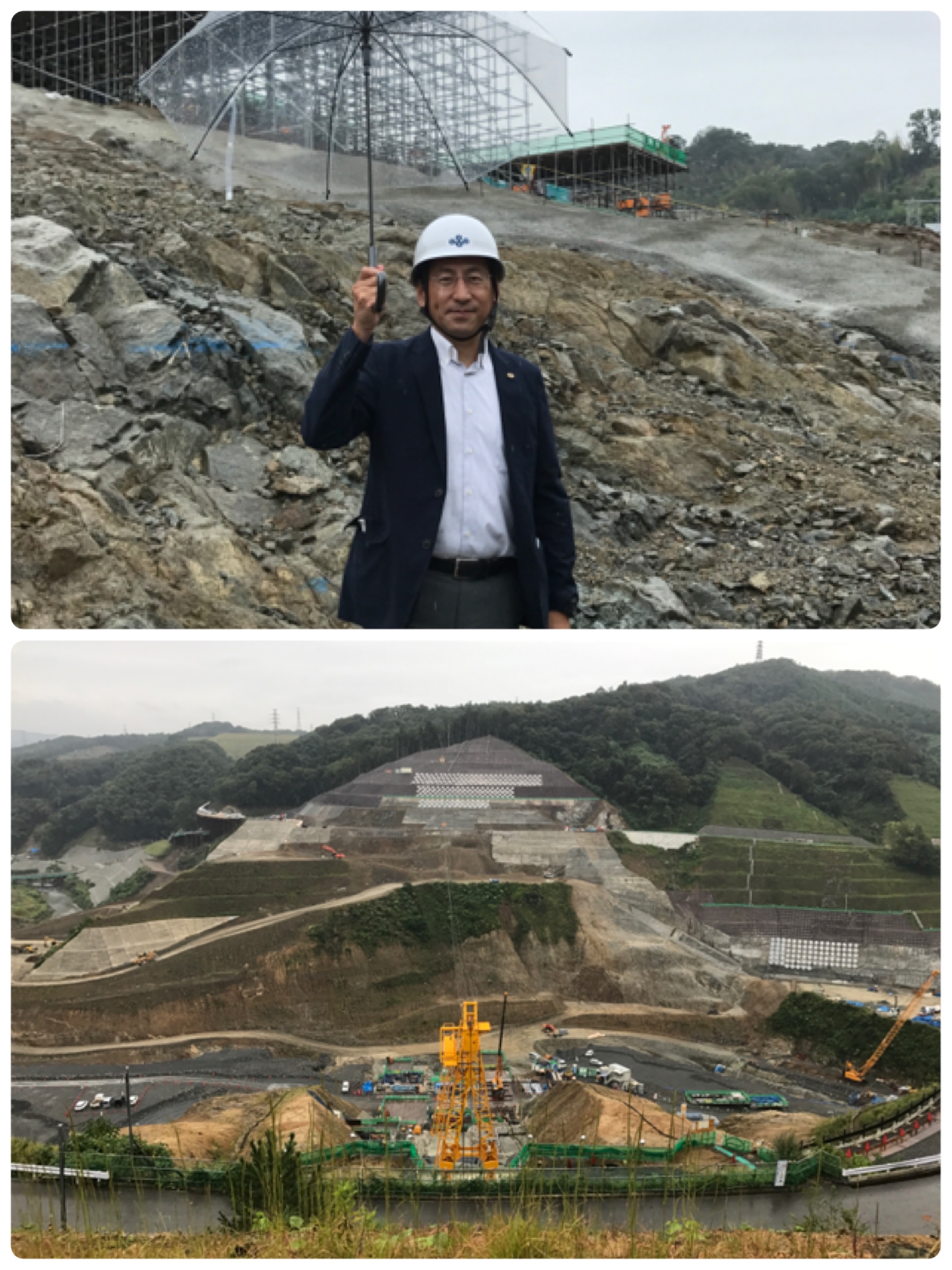 建設現場を視察して岩盤の風化状況を確認しました。