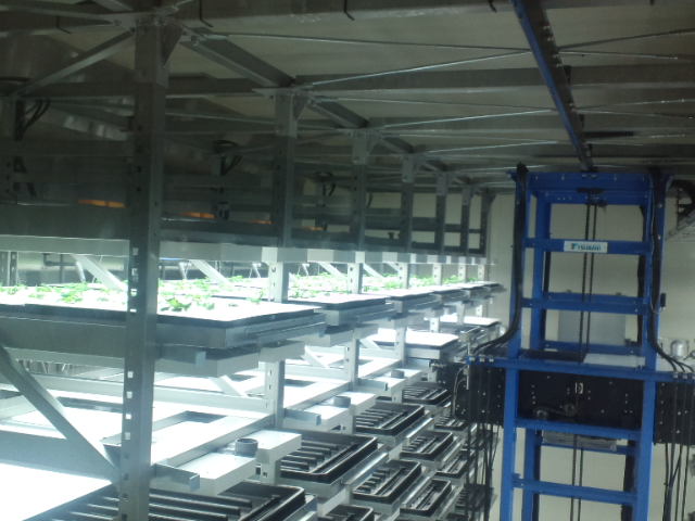 ここは、完全人工光型に特化した先進的な植物工場研究としては国内最大の施設です。