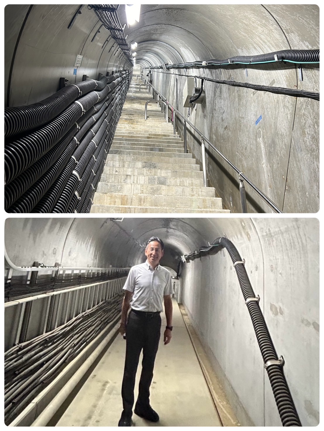 完成後の監査、各種の測定などを行うためにダム堤体内部に設けられた通路(監査廊)にも入らせていただきました。