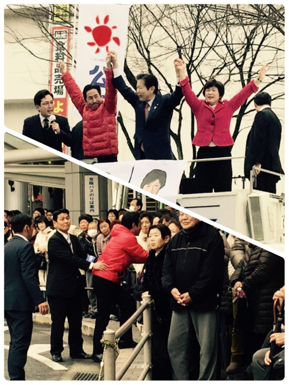 本日、午後1時から寝屋川市駅で、山口代表を迎えて公明党の街頭演説会を実施しました。