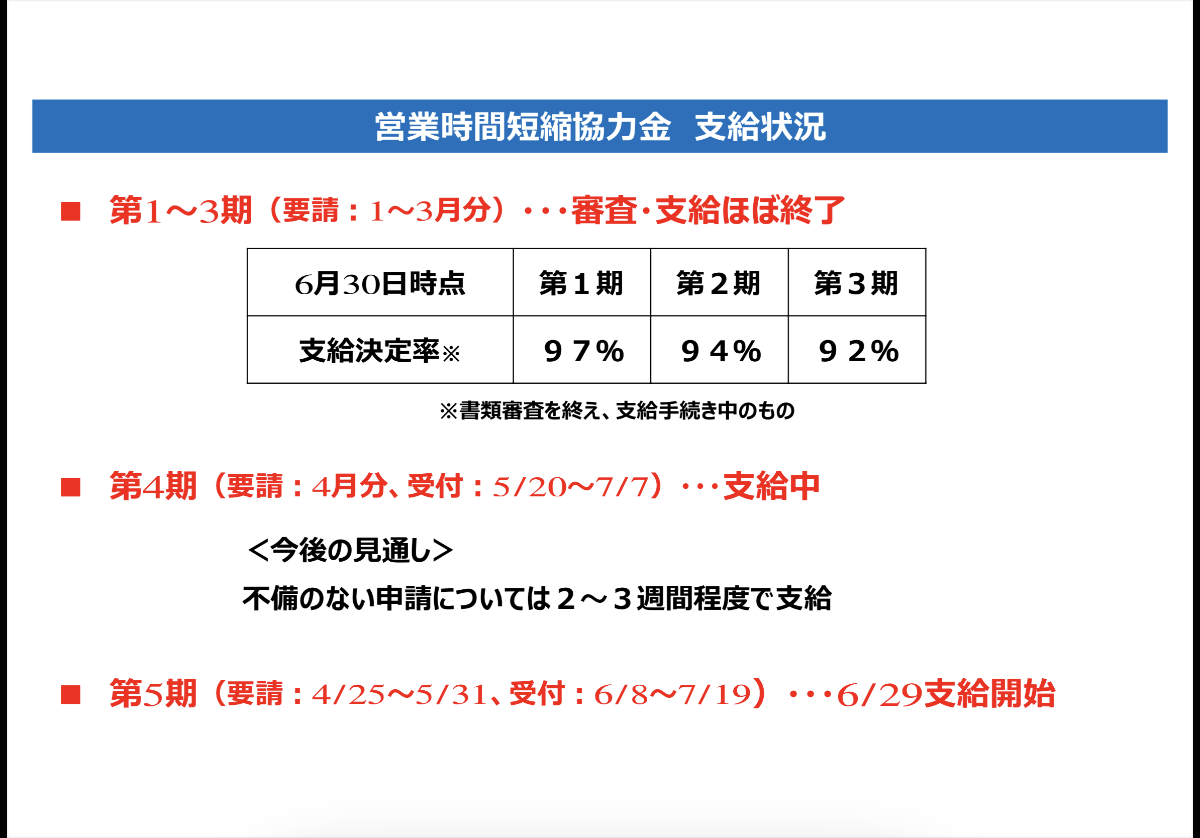 なお、早期給付の申請を希望されない場合も、8月中旬に募集を予定している協力金の本申請(要請期間:令和3年6月21日から7月11日まで、7月12日から8月22日まで)で、全額一括でお受け取りになることも可能です。