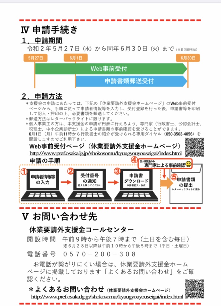 第一段の休業要請支援金では書類作成がうまくいかず、問い合わせが多かったですが、今回の制度では、個人事業主の書類作成がスムーズに行えるよう、大阪府の負担のもとで行政書士や税理士など、専門家による書類の確認や相談が受けられる制度となりました。
