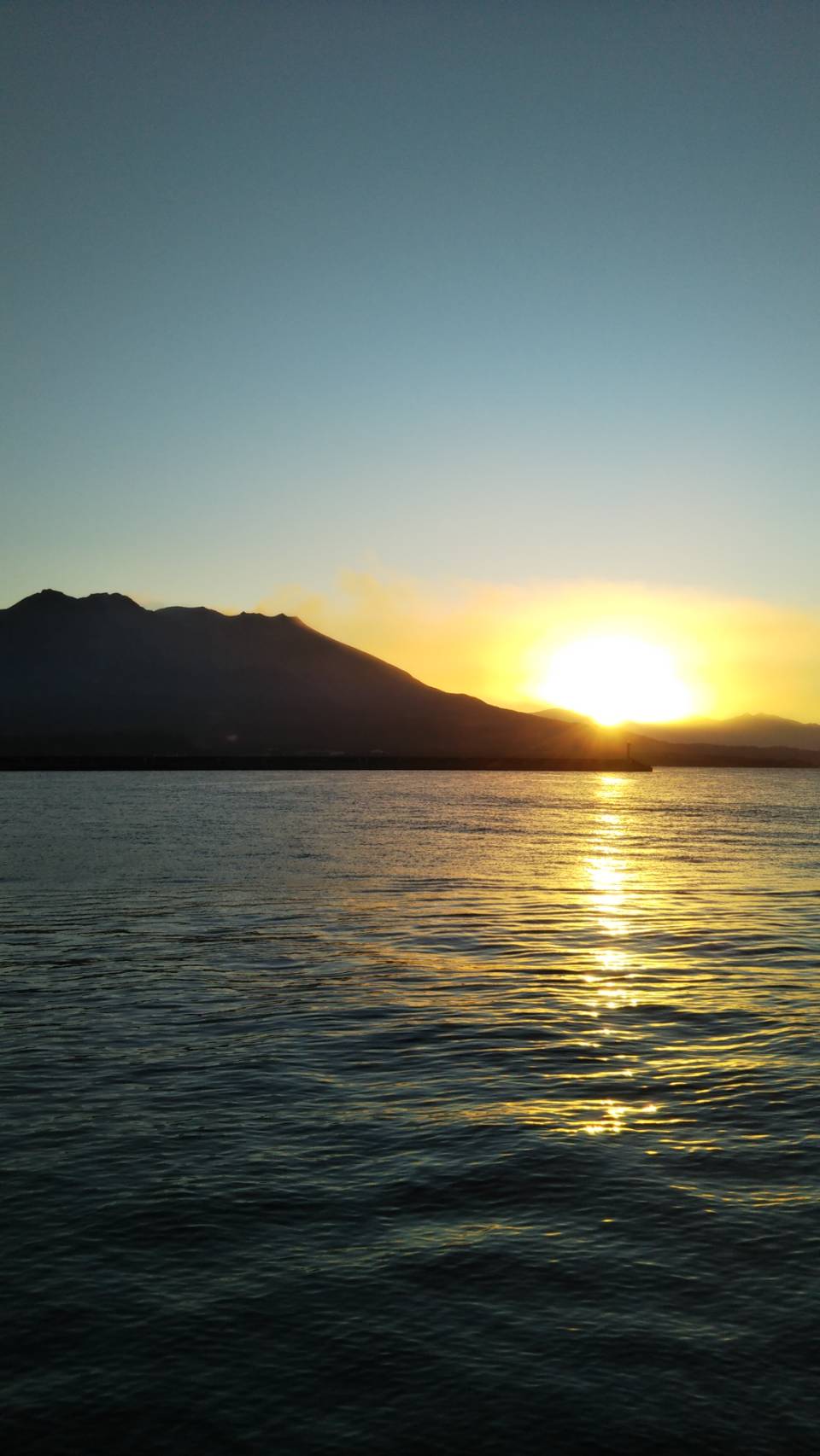 写真は故郷 鹿児島の友人が送ってくれた桜島からの日の出です。