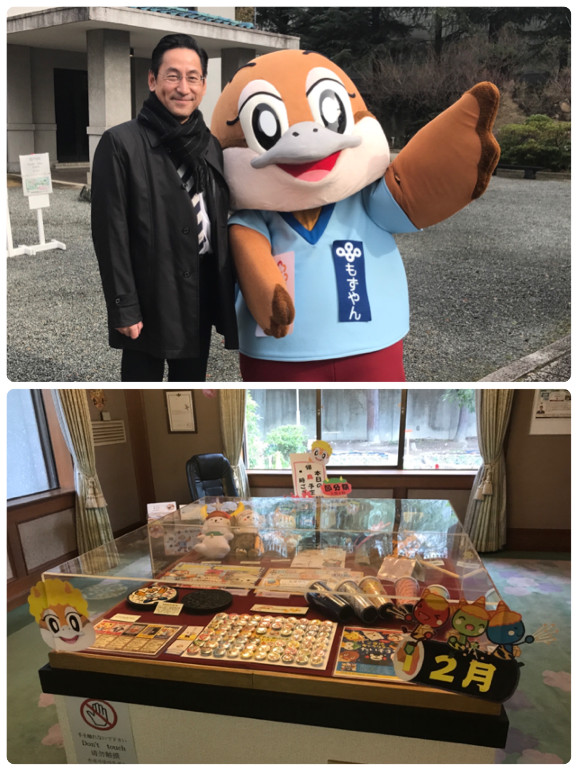 会議前に覗くと、大阪府広報担当副知事のもずやんが、お出迎えしていました。