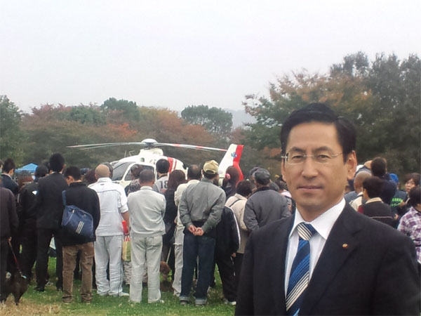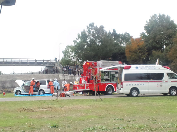 大規模な地震発生を想定し、ドクターヘリや消防車なども出動し、様々な火災消火、救出・救助の訓練でした。