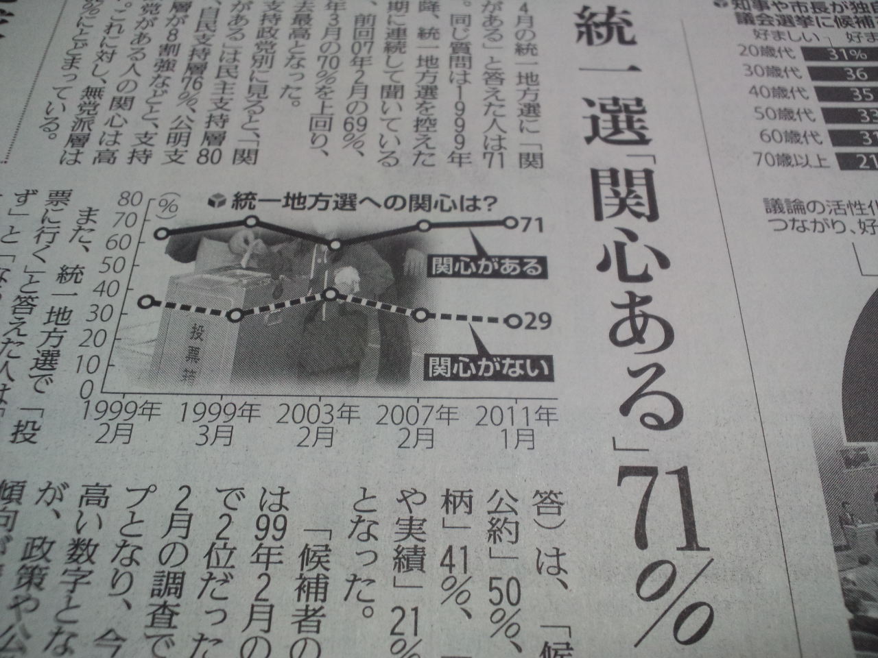 読売新聞社が行った「統一地方選・地方自治」に関する全国世論調査の結果が2月8日付けの読売新聞に掲載されました。