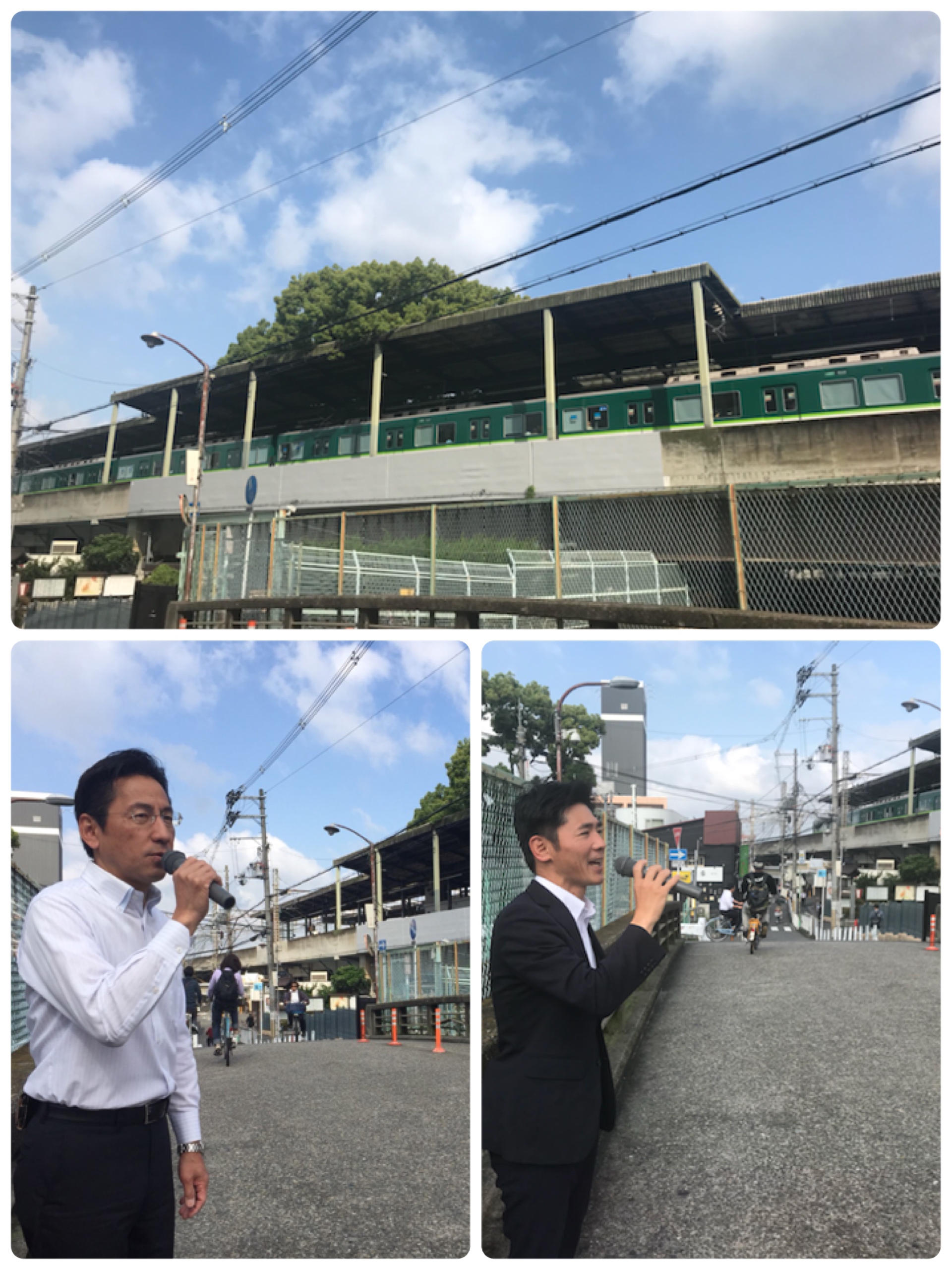 新しい一週間、萱島橋上で村上議員と朝の街頭活動からスタート。