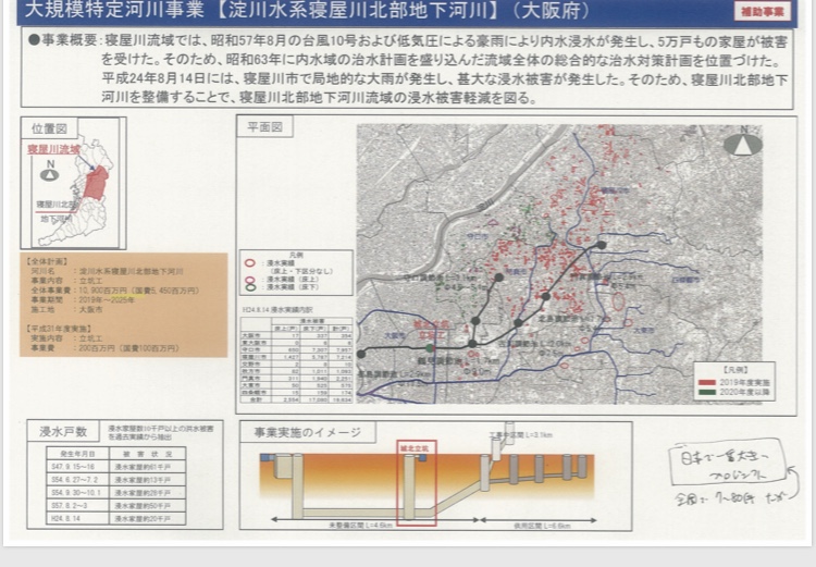 地下河川事業の城北立坑の総事業費 109億円のうち、国が54億5000万円つけてくれました。